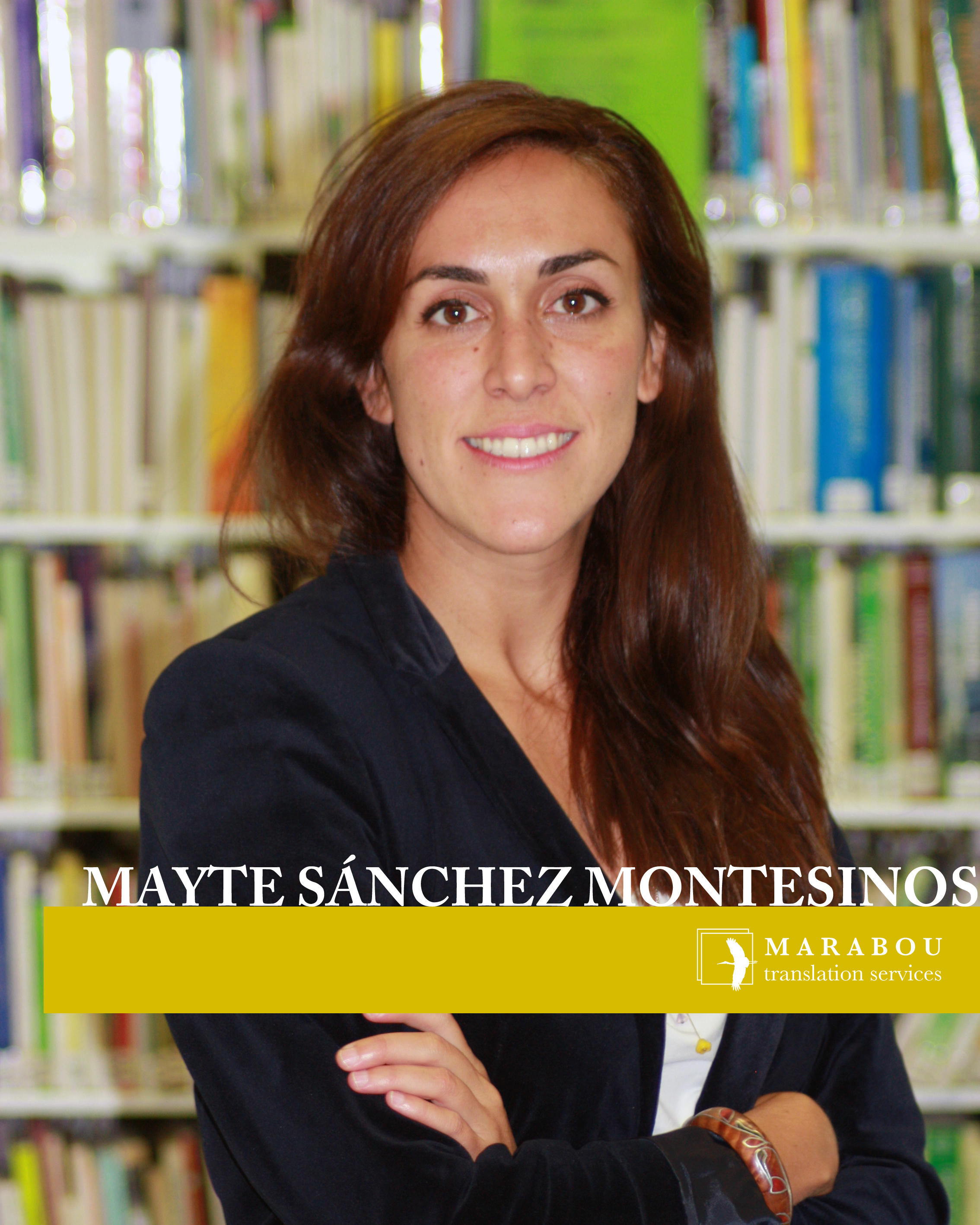 Cofundadora de Marabou Translations, es licenciada en Filología Inglesa por la Universidad de Murcia, licenciada en Traducción e Interpretación por la Universidad de Granada y acreditada como traductora jurada de inglés por el Ministerio de Asuntos Exteriores y Cooperación. Tras completar su formación en Inglaterra e Irlanda, lleva más de seis años dedicándose a la traducción y a la interpretación en diversos ámbitos: corporativo, legal, de organizaciones internacionales y cooperación internacional, de transcreación y marketing y literario. En la actualidad combina sus tareas como intérprete acompañante y traductora jurada con la traducción de narrativas de grandes autores de la literatura anglosajona. Destaca la traducción de obras de Henry James (Los matrimonios) y O. Henry como La voz de Nueva York y la recientemente publicada Rolling Stones, una selección de relatos del escritor norteamericano promovida, como las obras anteriores, por Ediciones Traspiés.